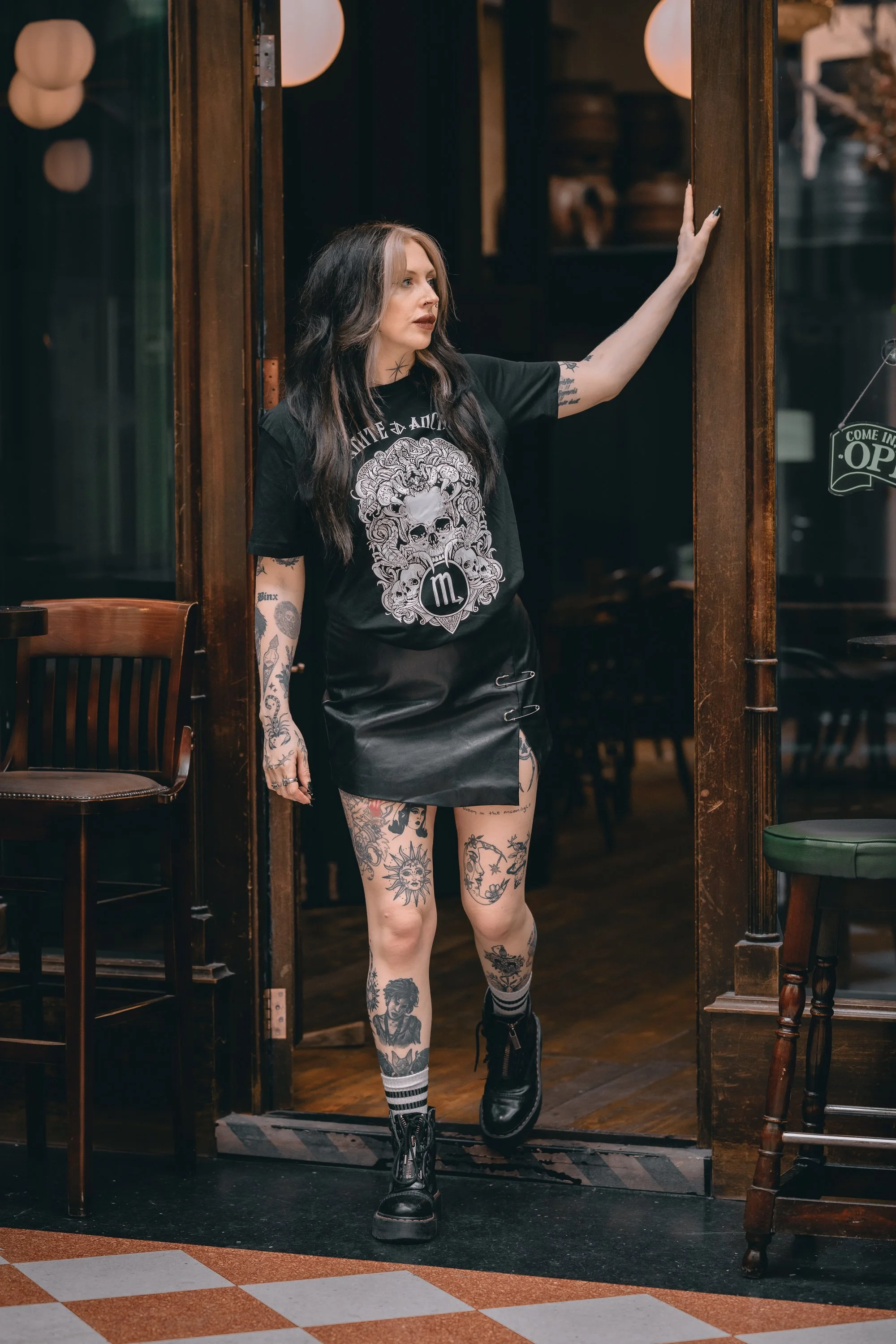For the final part of the shoot we moved to the outer bar area and Great Western Arcade, shooting for another incredible brand called Granite Anchor Clothing. I already have their Simpson’s ‘Nevermore’ top on my wishlist so was so excited that they responded to Meg. I’m crazy about this tshirt, it’s part of their Zodiac collection (this one is Scorpio) and I can’t wait to see what the Aquarius one is like so I can represent my fellow hard-headed water bearers.